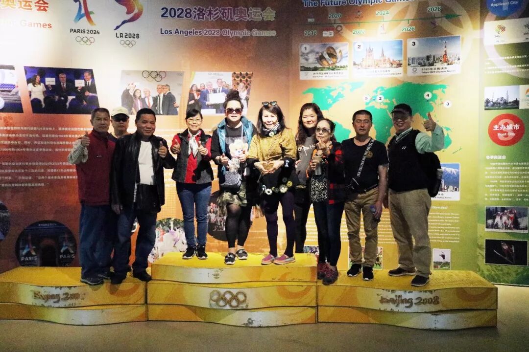 在参观过程中,台湾朋友不时地对我馆馆长吴经国表示敬佩。一行人愉快的在北京奥运冠军台上合影留念,表示很高兴,对于此次的行程真是收获颇丰。