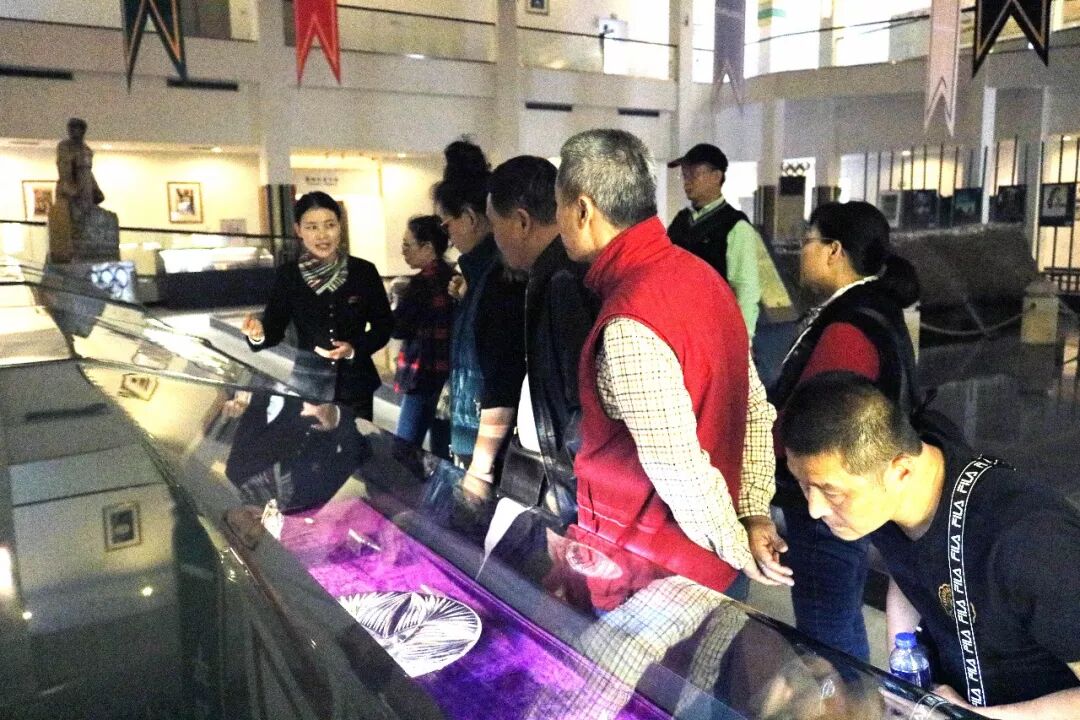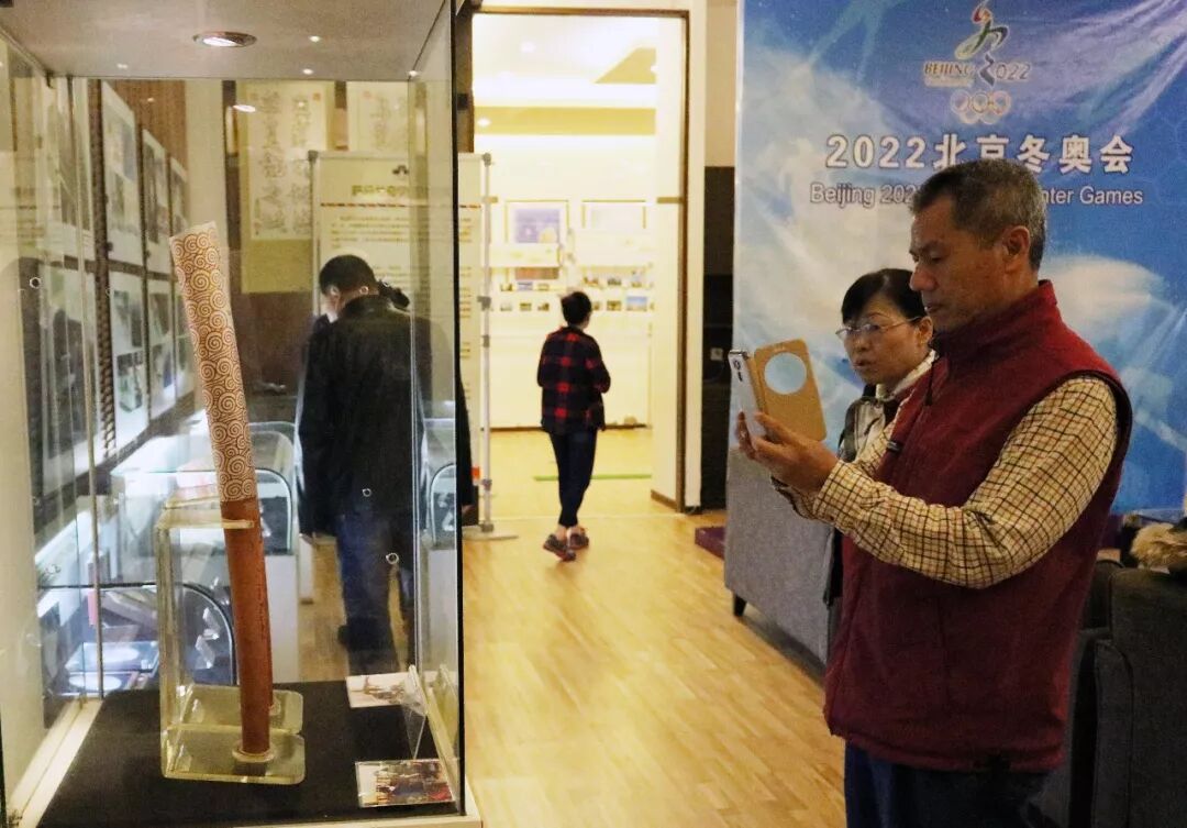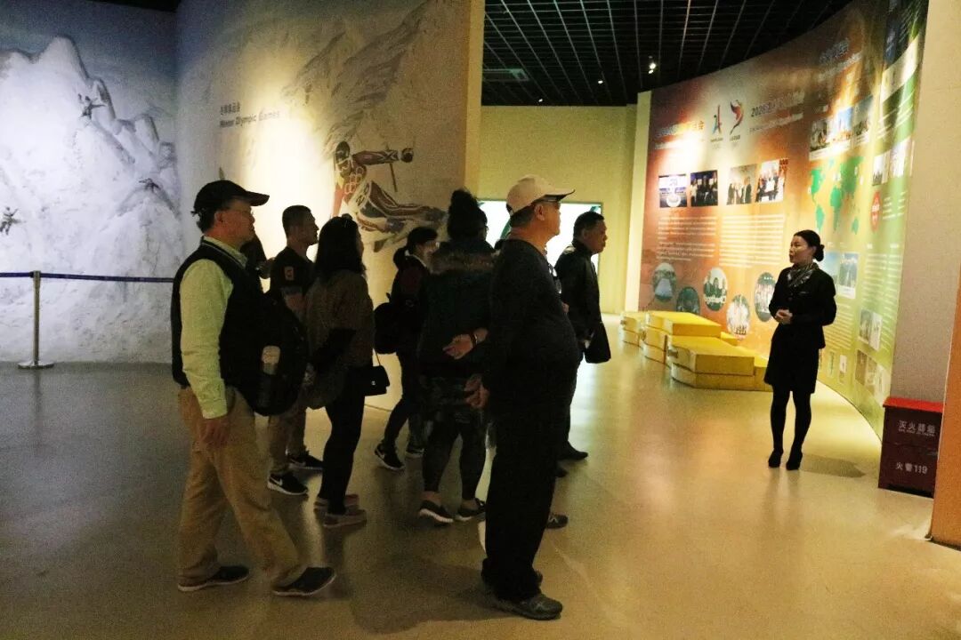 参观团一行人在我馆讲解员的引导下参观了国际体育珍藏品展、萨马兰奇明信片展及二楼四大经典展示厅。