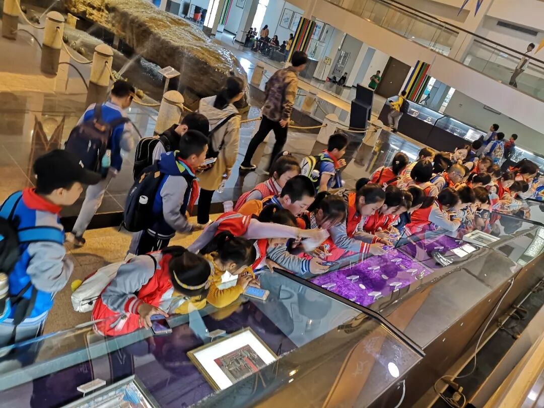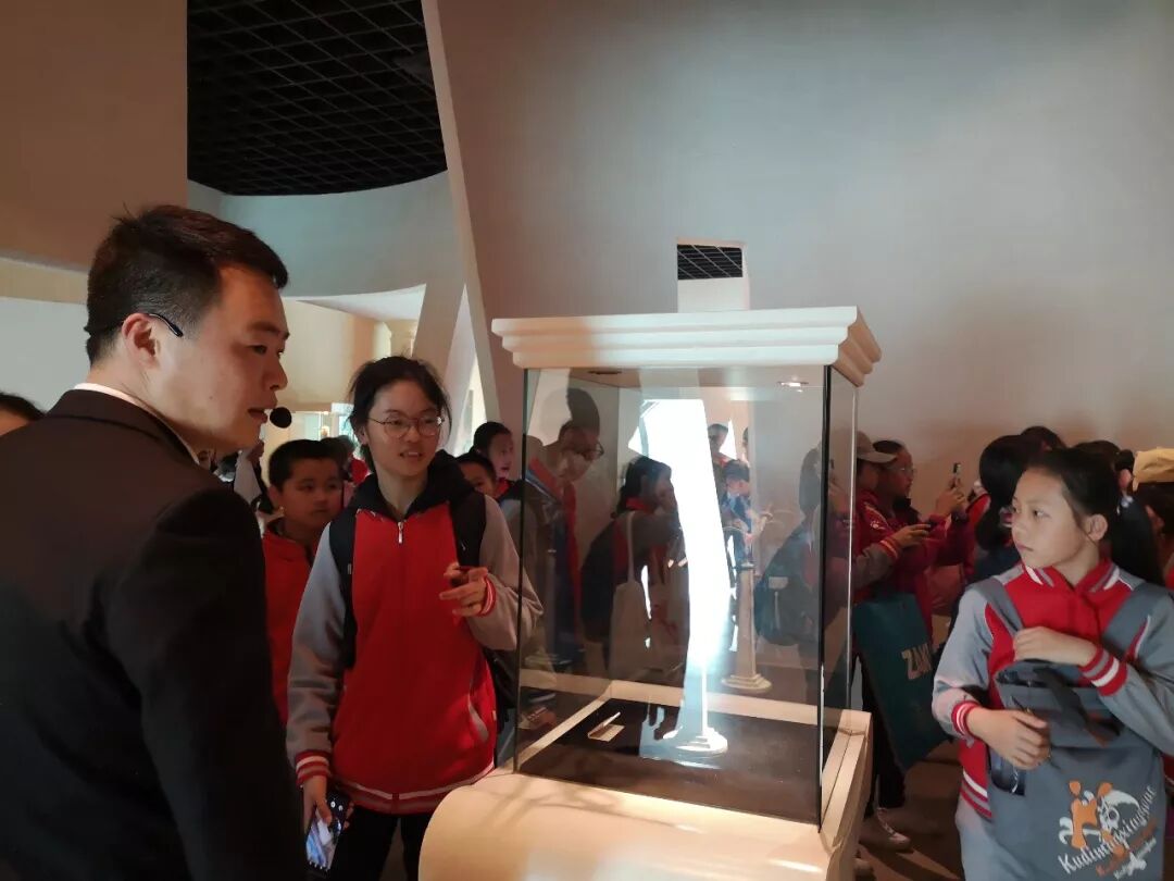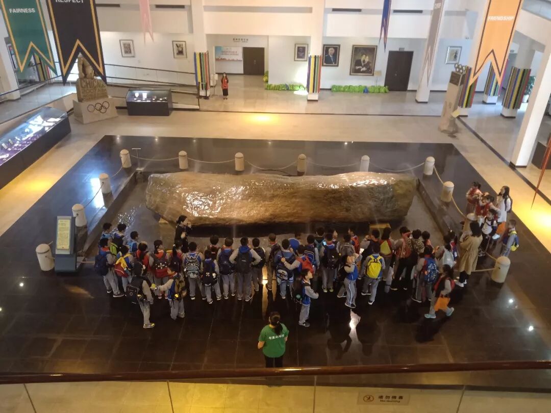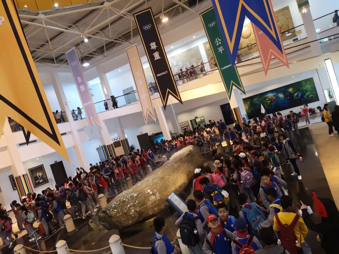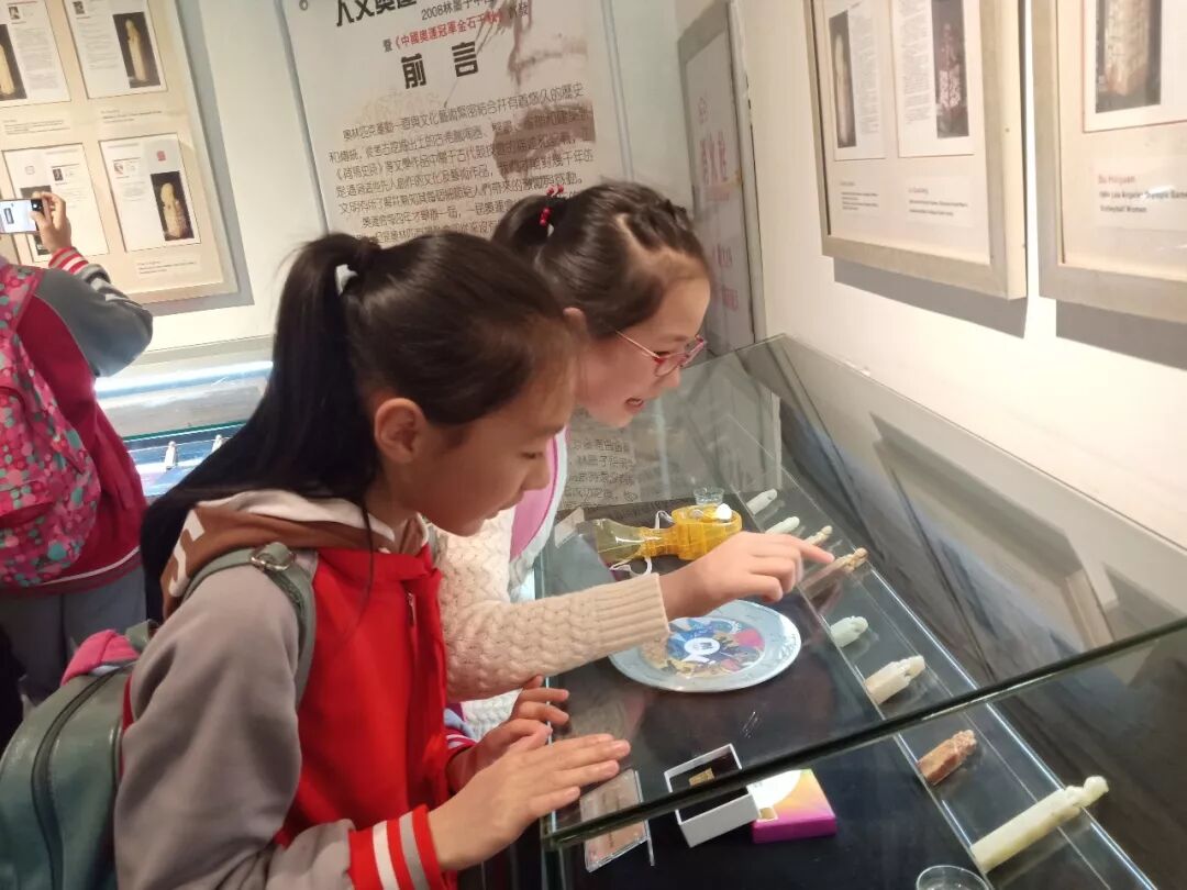 在博物馆内同学们围观在距今上亿年的长江碧玉原石周围,目睹它的神奇。 随后,同学们分别参观了国际奥林匹克珍藏品站、奥林匹克时光隧道站、奥林匹克艺坊站、吉祥物奥运项目小剧场站、中国奥运站等五大站点。