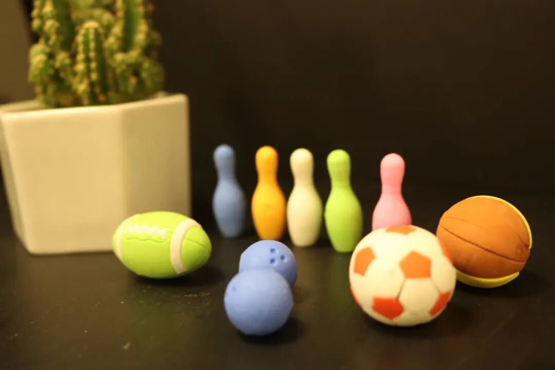体育器材是体育运动不可或缺的一部分,结合这一理念制作设计的橡皮檫,可拆卸拼装,也可作为桌面小游戏进行放松。