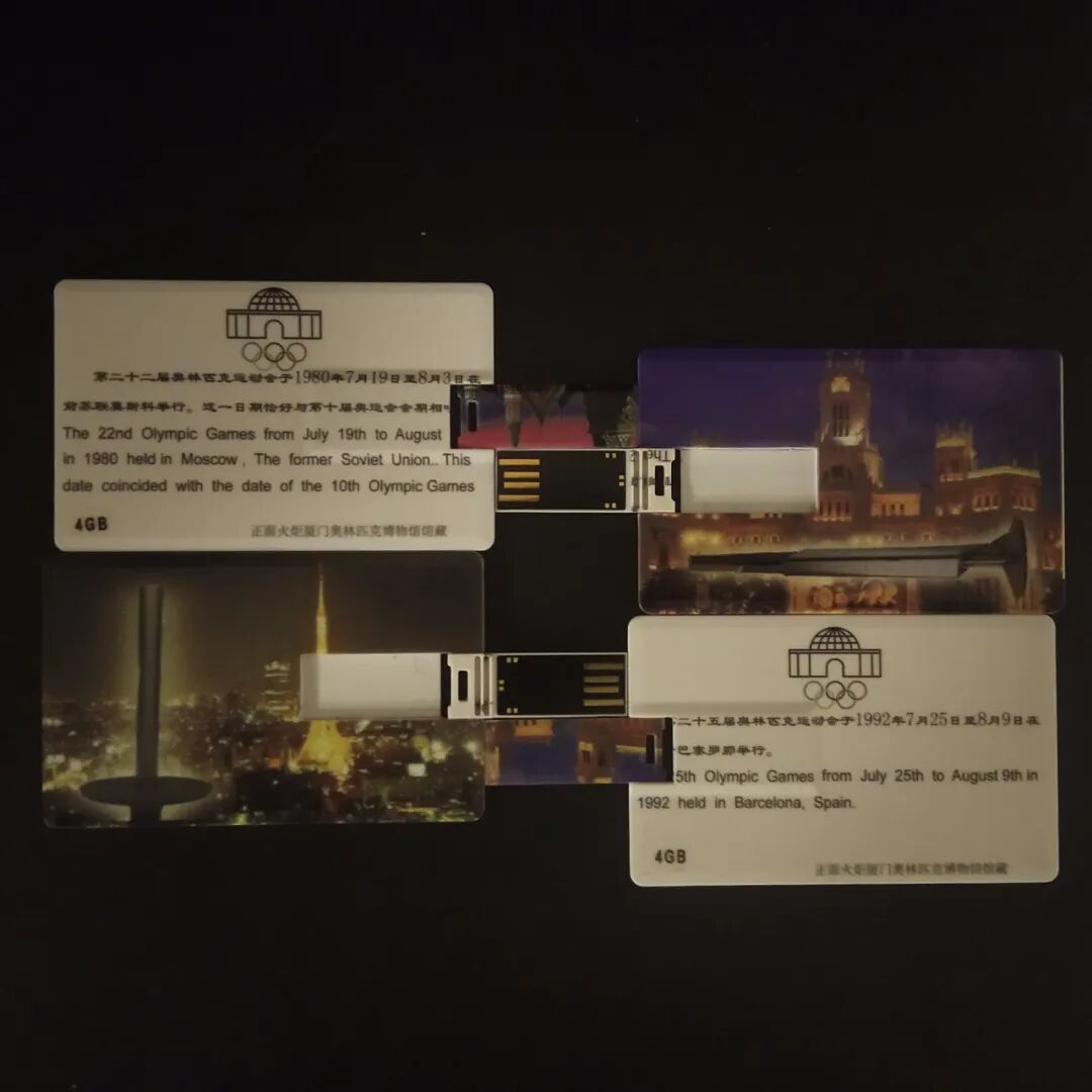 正面是火炬与城市的图案,展示了奥运会举办城市的独特魅力,背面是历届奥运会的介绍,每个U盘代表了不同的奥运会,馆内的U盘为一套,有很高的收藏价值,表达了博物馆薪传奥运文化的初心