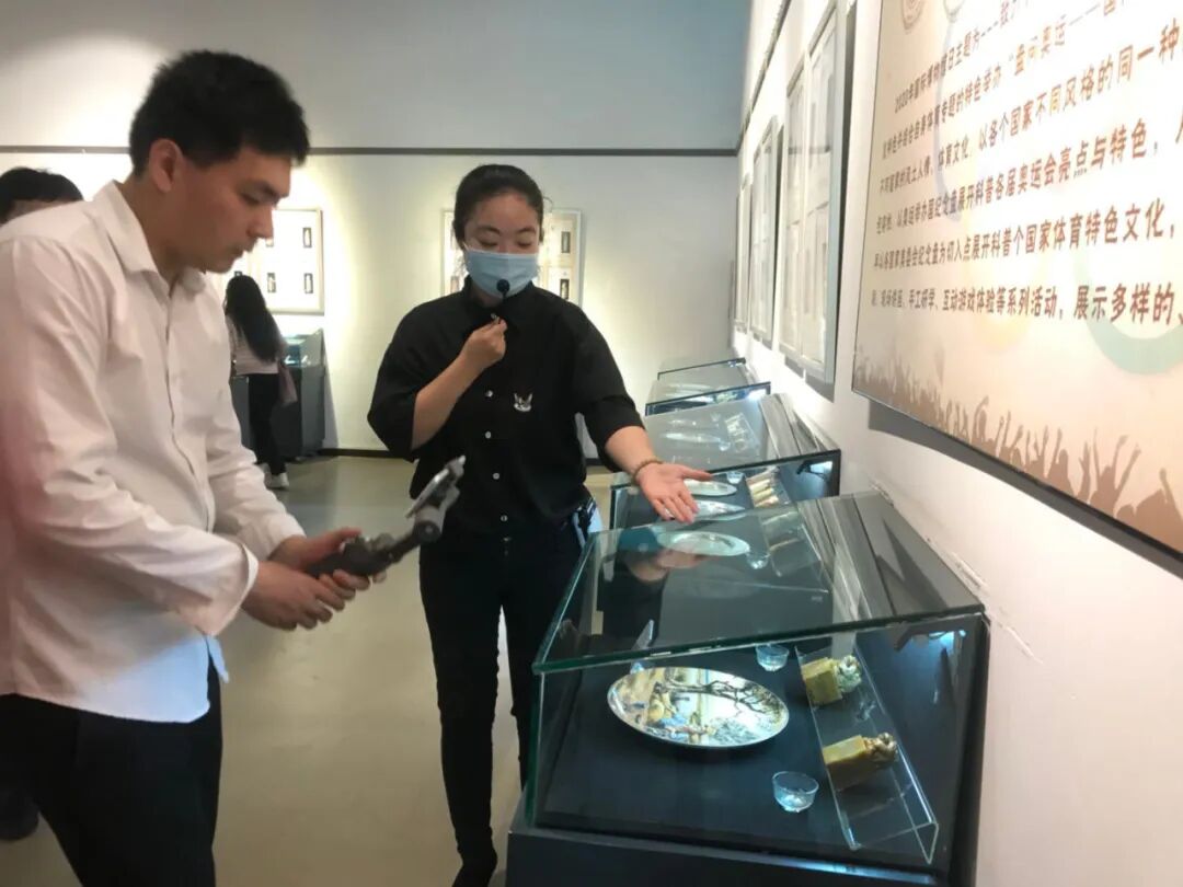 在吴云女士的带领下,我们来到第四展厅,正式进入“盘问奥运——国际体育纪念盘展”的世界,本次讲解由刚刚获评我馆优秀“发声大使”李璐带领我们走进纪念盘的世界。本次展览以实际赛事纪念盘、各国奥委会纪念盘、各国纪念盘为主,展开介绍各国体育文化演变与发展,各届奥运会亮点与特色,单项体育赛事相关文化与发展,科普个国家体育特色文化,展示多样的、包容的、多元素的体育文化。一个个纪念盘在讲解员的口中不断丰富,一个展览过后,让人对体育有了不一样的认识。