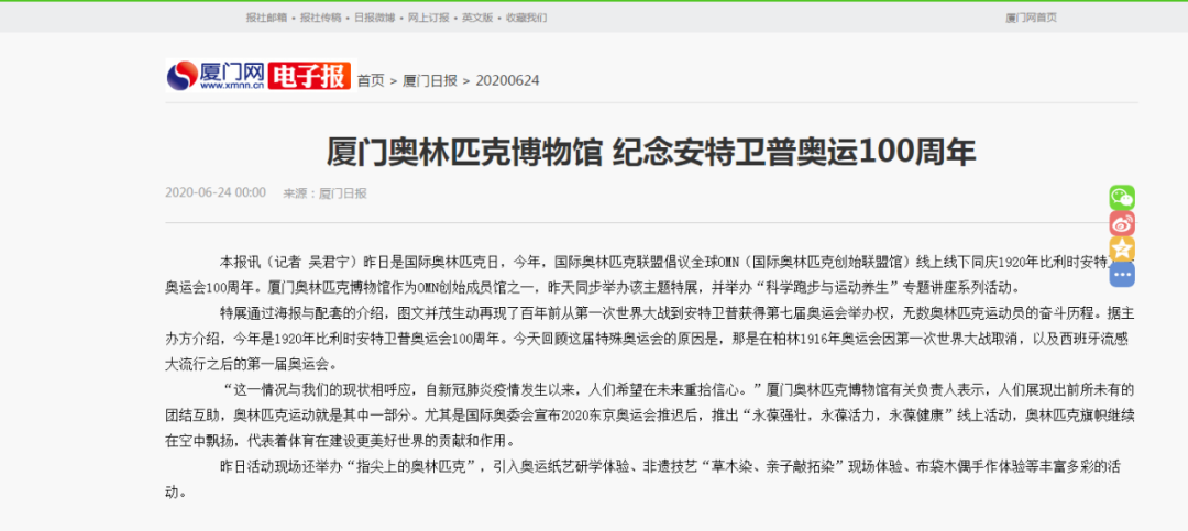 媒体聚焦 | 众多知名媒体相机报道我馆623全球OMN同庆1920年安特卫普奥运会100周年特展